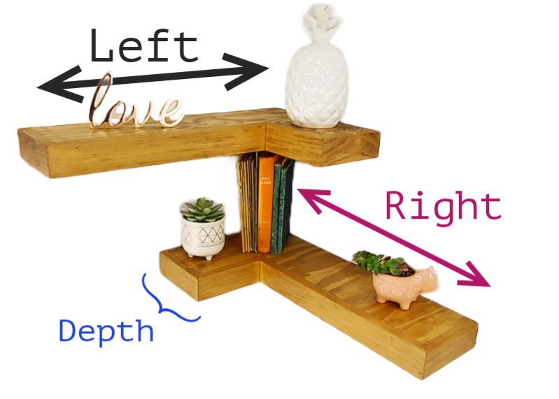 Depth is the distance from the wall to the front face. All of our corner floating shelves have a front face height of 2".